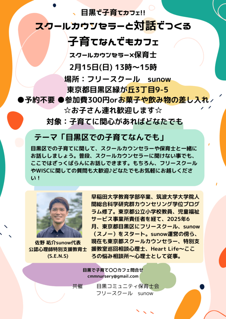 毎月行っている子育てカフェ、2月も引き続きsunow(スノー)にて開催いたします!